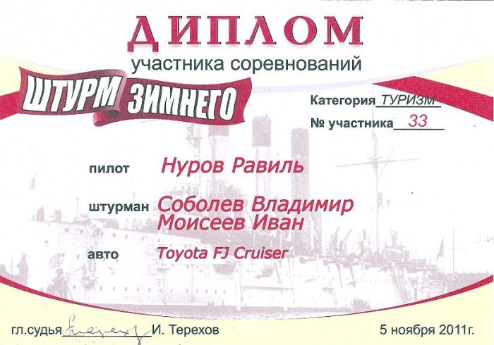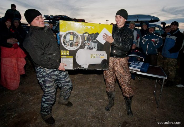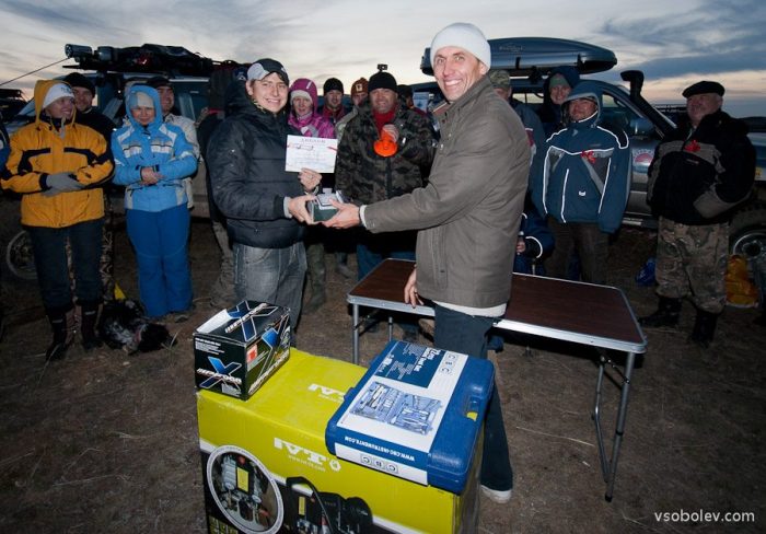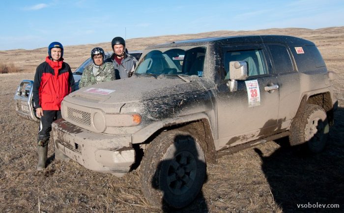 Сложно в это поверить, но в итоге мы добились третьего места! От неожиданности я даже не смог сделать хорошего снимка торжественного момента вручения диплома и приза — комплекта защитных чехлов на сиденья от ARB от магазина Off-Road. Поэтому приложу просто еще одну фотографию нашего экипажа.