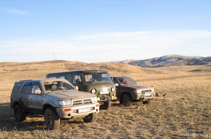 Приведу простой пример — некоторые экипажи, пользуясь возможностями своих автомобилей, просто ехали по степи куда указывала стрелка, оставляя многочисленные следы на припорошенных снегом полях и склонах гор. Но если бы они отклониться влево буквально на 50-100 метрах — попали бы на едва заметную колею. Как бы не была хорошо подготовлена машина, но по накатанной колее можно идти в два-три раза быстрее, чем по дикому полю.